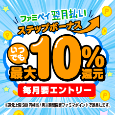 ファミペイ翌月払いで最大10%還元!
